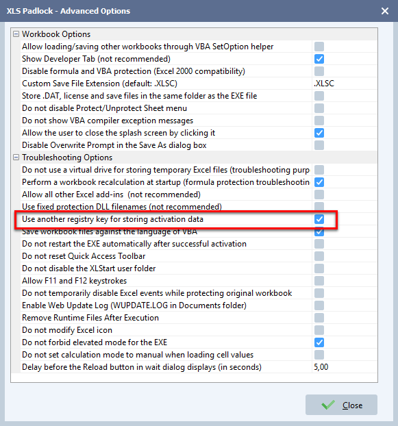 - Use another registry key for storing activation data: A workaround for registry conflicts.