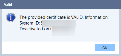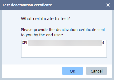 Upon receipt, you can use the ‘Test deactivation certificate’ button in XLS Padlock to verify the certificate. If the deactivation is successful, XLS Padlock will display the deactivation date and the unique identifier of the user’s computer:
