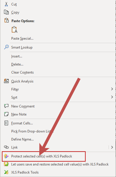 To protect a formula, simply right-click on one or more cells containing the formulas you want to hide and select “Protect selected cell(s) with XLS Padlock” from the context menu.