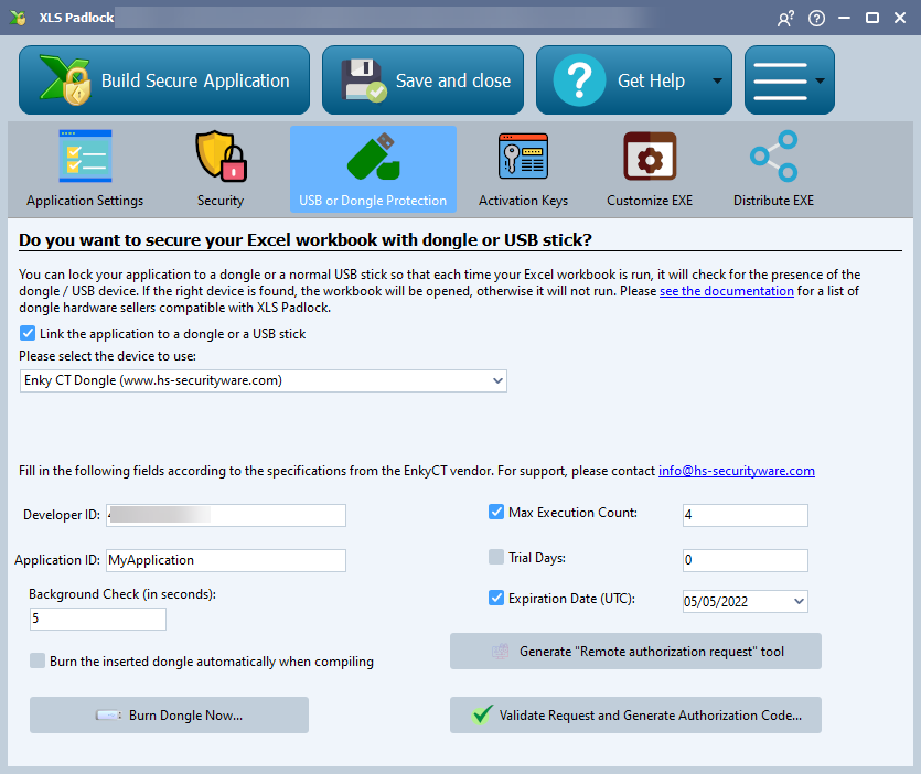 You can also set restrictions: limit the number of times your Excel workbook can be run, make your key expire after a given number of days or after a given date.